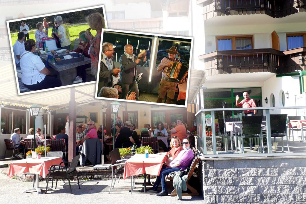 Mit einem leckeren Frühstück im Hotel stärkten wir uns für den Tag. Um 10 Uhr treffen wir uns alle vor dem Hotel. Die Erkundung des Walchsees stand auf dem Tagesplan. Die wanderfreudigen Teilnehmer unter uns marschierten gemütlichen Schrittes mit Rainer Weis los. Alle übrigen Teilnehmer fuhren unter fachkundiger Leitung von unserem Busfahrer Manni sowie Gisela Weis mit dem Bus. Der Wandertrupp machte eine kleine Halbzeitpause am Campingplatz mit Ausblick auf den Walchsee. Währenddessen ließ es sich die Bus-Gruppe im Biergarten am See gut gehen.
