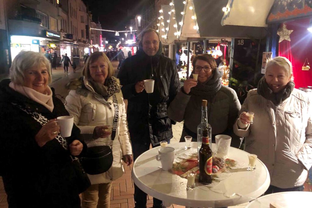 Viele Gäste konnten sich noch an unsere herzhaften und süßen Waffeln erinnern und das obwohl wir coronabedingt zuletzt 2019 auf dem Weihnachtsmarkt waren. Mit den frisch zubereiteten Waffelteigen von Gisela Weis und Brigitte Engels stand stets ausreichend Teig für alle Hungrigen zur Verfügung. Auch die von unserem Vorsitzenden Thorsten Steinke und unserer Kassiererin Brigitte Engels selbst gebrannten Mandeln fanden reißenden Absatz. Neu in unserem Sortiment war der Heiße Glüh-Spritz. Unsere Vorräte für die Herstellung waren bereits am Freitagabend aus und mussten schnellstmöglich nachorganisiert werden, damit wir den heißen Glüh-Spritz auch noch an den Folgetagen anbieten können.